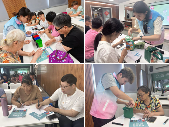 本次活动以垃圾分类小课堂拉开序幕。志愿者们提前精心打磨宣讲PPT,全程采用生动插图和通俗语言,为残疾人之家朋友们介绍垃圾分类的重要性和分类标准,教会他们分类记忆口诀。这是许多残疾人朋友第一次系统地了解了垃圾分类的意义,他们纷纷表示,以前对垃圾分类的概念很模糊,但现在明白了垃圾分类不仅是保护环境的一部分,更是每个人能参与的社会责任。一位朋友说:“原来我们也可以为地球做点什么,这让我感到很有成就感。”