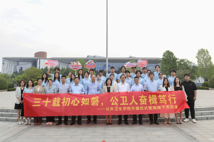 5月26日早晨7:00,我校举行“三十载初心如磐,公卫人奋楫笃行”升旗仪式暨国旗下的思政课,本次活动由学生工作部主办、公共卫生学院承办。院领导王建明、盛彤彤、毛曦,教工党支部书记代表,全体辅导员,本研学生代表参加了活动。活动由学院流行病专业研究生第一党支部书记徐彤主持。