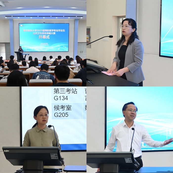 为全面检验本科医学教育实践成果,搭建学生实践能力与素质展示平台,引导提升职业素养与岗位胜任力,5月27—28日,南京医科大学2025届预防医学专业毕业生公共卫生综合技能大赛在江宁校区至诚楼顺利举办。教务处副处长黄琳,校教学督导组组长周建伟,公共卫生学院领导王建明、盛彤彤、陆慧、毛曦出席大赛,大赛裁判、标准化病人、实验教学中心、教研办、学工办等相关老师以及118名预防医学毕业生参加了大赛。