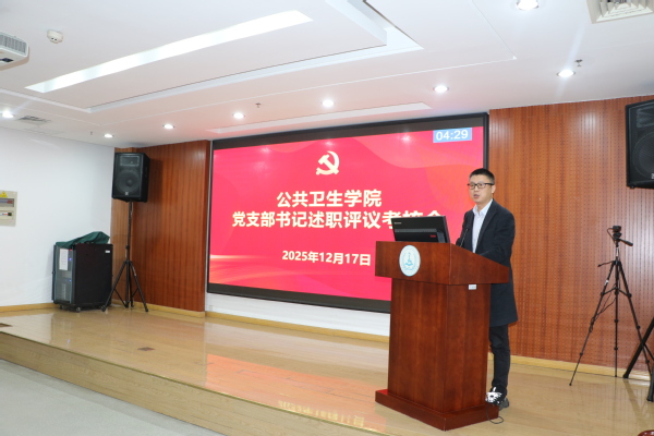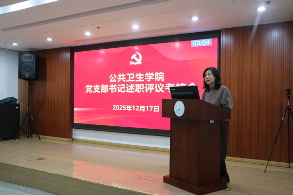 12月17日下午,公共卫生学院党委在至诚楼G205报告厅召开2025年度党支部书记述职评议考核会,全体院领导,党支部书记、支部委员参加了述职会。会议由学院党委副书记、副院长毛曦主持。