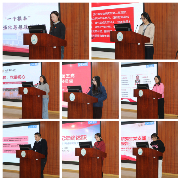 接着,根据学校党委对党支部书记党建工作述职评议考核要求,结合教师党支部和学生党支部的建设方案,各党支部书记依次进行了述职评议。围绕学习宣传贯彻习近平新时代中国特色社会主义思想、深入贯彻中央八项规定精神学习教育、落实“三会一课”制度、开展主题党日活动、党员教育管理等方面进行汇报,并结合“一支部一特色”品牌工作,全面总结党支部一年来取得的工作成效,认真分析目前工作中存在的问题,并提出2026年度的工作思路和改进举措。