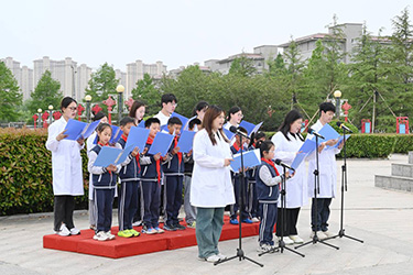 随着激昂的乐曲奏响,庄严地传国旗、升国旗仪式拉开活动序幕。师生代表以手手相传的方式传递五星红旗,全体师生神情肃穆,齐唱国歌。全国人大代表李肖娜以“青春与使命”为题作国旗下的思政课,她结合基层工作经历,讲述家国故事,勉励青少年将个人理想融入国家发展大局。大中小学的学生代表共同演绎《青春星火・红旗永承》主题朗诵,以饱满的情感展现不同学段青少年对五四精神的传承与弘扬。院领导王兴东、王磊代表学院向中小学生赠送红色书籍。仪式最后,王兴东书记作总结寄语,对全体青少年提出要以爱国为底色、以创新为动力、以担当为脊梁,传承五四精神,为实现中华民族伟大复兴贡献青春力量。