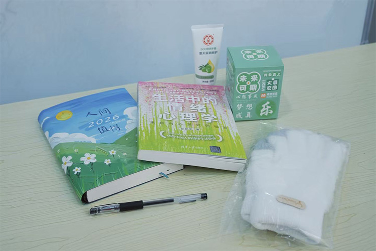 活动现场,主持人带领学生探讨“成长”在当下阶段的特殊意义,并引导学生逐一打开内含《生活中的情绪心理学》书籍、时间管理本、种子盲盒以及棉手套与护手霜的“成长礼包”,帮助学生学习情绪觉察,合理规划寒假生活。在“我的启动时刻”沉浸式体验中,同学们现场书写寒假计划、标记书籍章节、分享心情期待,现场氛围温暖而积极。