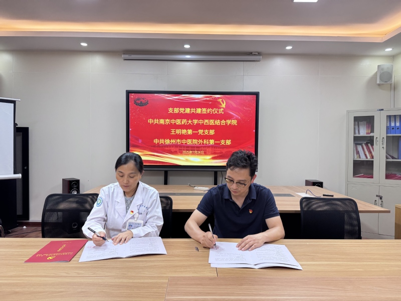 7月23日,中西医结合学院王明艳第一党支部赴徐州市中医院开展党建共建。王明艳第一党支部书记、中西医结合学院副院长陶伟伟,徐州市中医院外科第一支部书记、肛肠科主任秦晓静及双方党员代表参加签约仪式。
