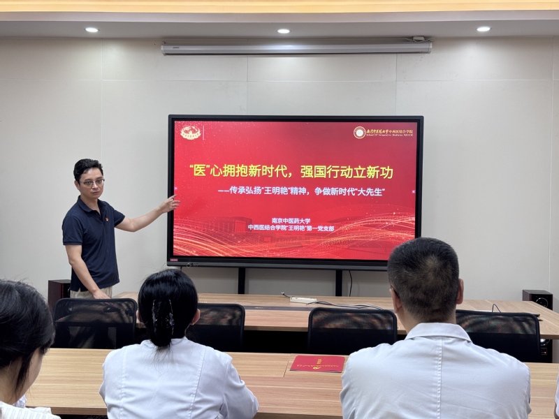 秦晓静对王明艳第一党支部党员代表的到访表示热烈欢迎,表示希望通过支部共建,进一步深化中西医结合学院与徐州市中医院在临床、教学及科研等各方面合作,共同推动医学人才培养和医疗服务水平提升。随后,陶伟伟以微党课形式讲述“王明艳”精神,介绍王明艳第一党支部在党建引领下,教学、科研双融双促所取得的丰硕成果。