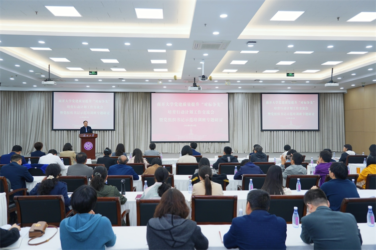 材料科学与工程学院党委、生命科学学院生物化学与分子生物学教工党支部书记王淑芳工作室、电子信息与光学工程学院光电子所教工党支部、统计与数据科学学院教工党支部、商学院本科生第一党支部、化学学院化学系无机研究生第一党支部、国际教育学院和汉语言文化学院专职组织员导航站作为标杆院系、“双带头人”教师党支部书记工作室、“双带头人”教师党支部书记“强国行”专项行动团队、教工样板党支部、本科生学生样板党支部、研究生学生样板党支部、组织员导航站项目代表进行交流发言,介绍如何推动党的建设与学校事业发展深度融合,在强基固本、示范创优中铸魂育人、砥砺奋进。