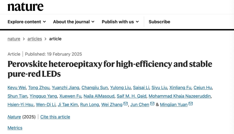 团队攻克纯红光钙钛矿LED技术难题 成果发表于Nature