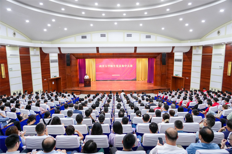 为深入学习贯彻习近平新时代中国特色社会主义思想,贯彻落实习近平总书记视察南开大学重要讲话精神和重要指示批示精神,加强党员党性修养,提升党员教育培训工作实效,9月25日,学校组织开展秋季学期第一次集中大课,全体师生党员共同观看中央党校(国家行政学院)科研部主任、教授陈曙光《深入学习贯彻习近平新时代中国特色社会主义思想》专题授课视频。