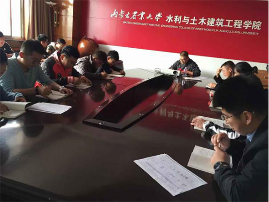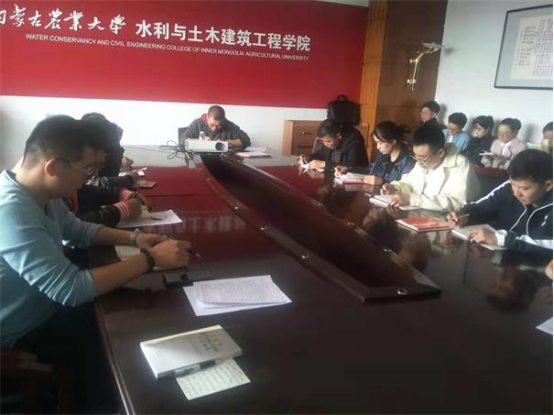 水建院驻河套灌区硕博士研究生流动党支部和水建院研究生水工党支部全体党员于2019年10月12日上午10:00-12:00在水利楼513开展学习研讨“不忘初心、牢记使命”论述摘编第二部分以及“守初心 担使命争做新时代模范自治区的模范干部、优秀党员”倡议书,并对习近平总书记对涉农高校的校长书记回信进行心得交流。