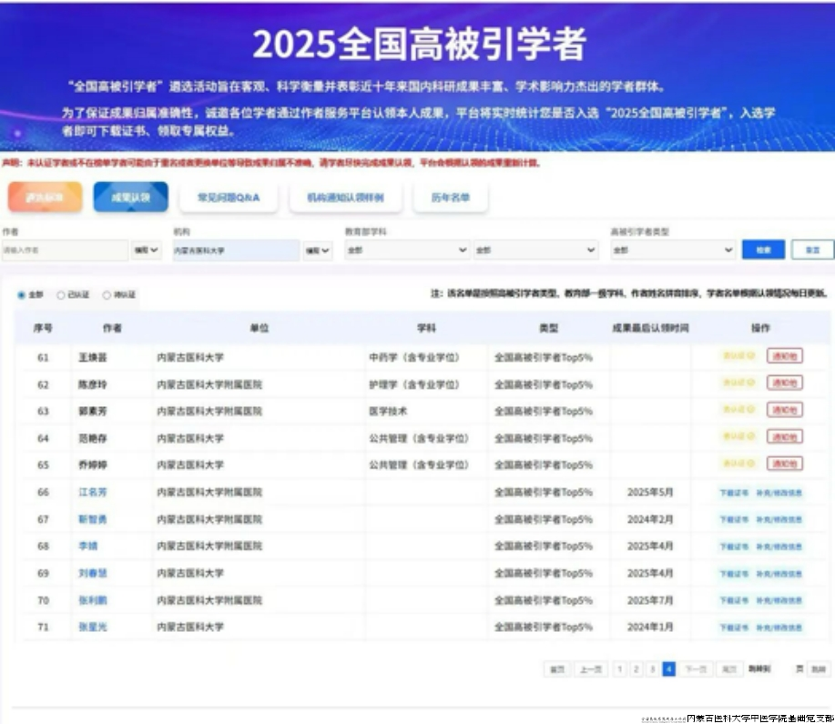 喜报 | 我校71名教师入选“2025全国高被引学者”名单
