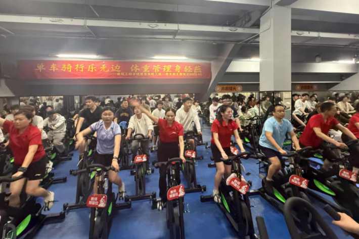 为深入贯彻《“健康中国2030”规划纲要》的战略部署,积极响应国家“体重管理年”及学校党委关于“运动在职大”的号召,3月14日下午四时,建筑工程学院党总支教工第一党支部开展了一场“单车骑行乐无边 体重管理身轻燕”主题党日活动。70余名师生齐聚体育馆动感单车训练房,以汗水为墨书写健康答卷,用坚持为笔描绘党建新篇。