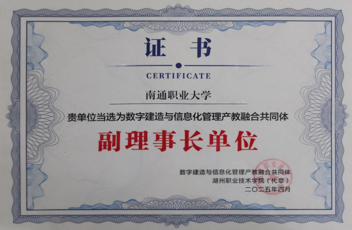 4月17日至18日,数字建造与信息化管理产教融合共同体年度会议暨“数字赋能•建设工程管理高质量发展论坛”在湖州职业技术学院举行。在会上,由浙江大学、杭州新中大科技股份有限公司、湖州职业技术学院等三家共同牵头成立了数字建造与信息化管理产教融合共同体,来自全国各地的36家共同体成员单位代表近90余人参加成立大会。南通职业大学当选为副理事长单位。