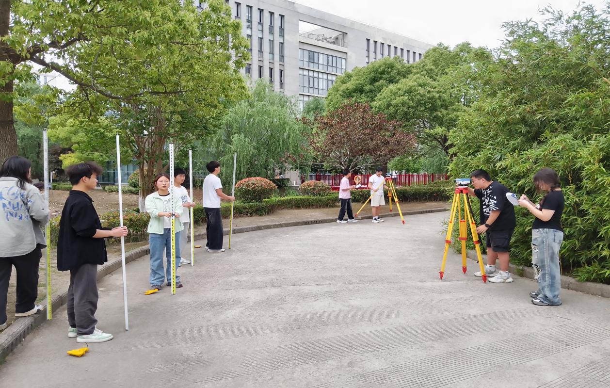 当日下午,大赛第二阶段——现场技能竞技在校园测绘实训基地火热进行。参赛学生以4人小组为单位,围绕“四等水准”“地形图测绘”“坐标放样”三大任务展开角逐。赛场上,各组选手分工明确、配合默契,精准操作各类测量设备,展现出扎实的专业素养和临场应变能力。