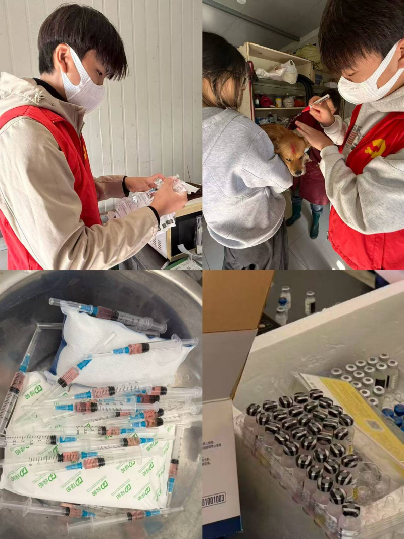 午间喂食环节,志愿者们严格按照“定时定量、营养搭配”原则,为不同年龄、体型的犬只分装餐食。针对幼犬和病犬,他们还协助兽医调配特殊奶粉和药物。下午的疫苗接种工作中,同学们配合医护人员完成标记、安抚犬只情绪、注射后观察等流程,累计协助完成80余只流浪犬的狂犬疫苗接种。