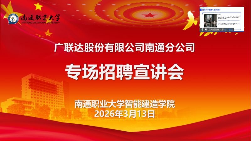 智能建造学院携手广联达股份有限公司南通分公司召开线上专场招聘会