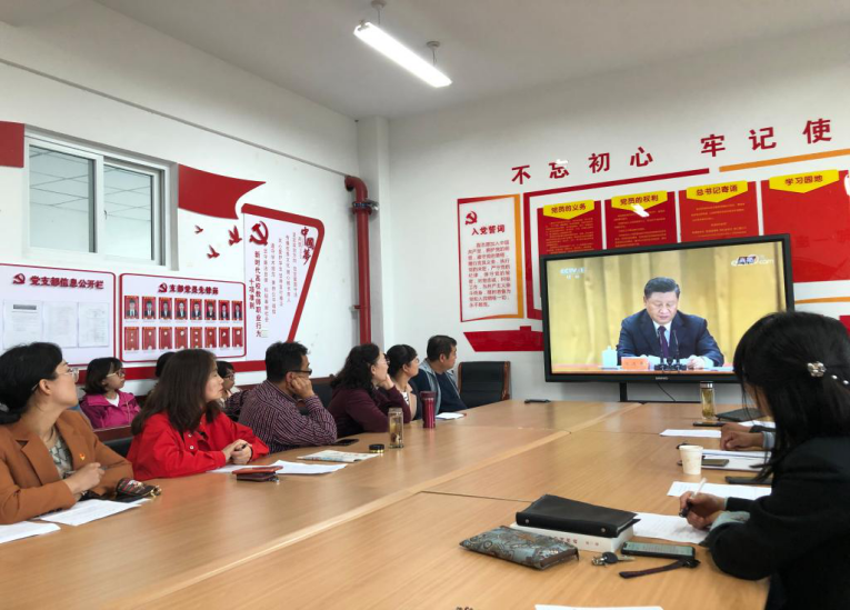 经济贸易系党总支副书记张炜领学习近平总书记在全国抗击新冠肺炎疫情表彰大会上的重要讲话精神,并组织教师党员观看高校党组织战“疫”微党课视频《党旗飘扬,筑牢红色防火墙》。经济贸易系主任马雪文领学中国共产党宁夏财经职业技术学院第二次党员大会上的报告。
