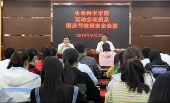 2019年9月25日,我院于知本楼报告厅开展运动会动员及国庆节放假安全会议,院党委副书记何彦平出席此次会议、辅导员帕哈尔丁·麦米提明及本科生和研究生学生代表参加了此次会议。