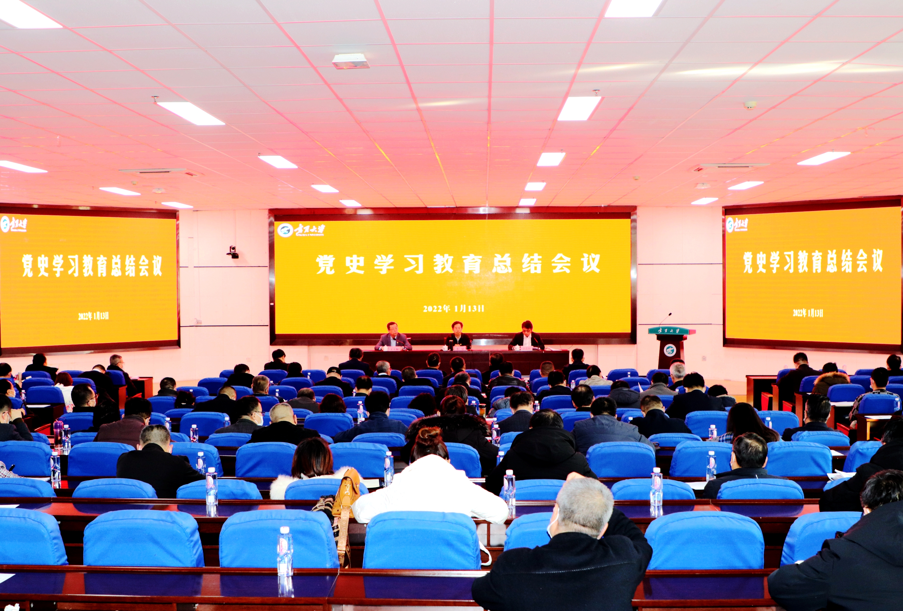 【宁夏大学新闻中心讯 冯禹君/文 张景/图】为深入学习领会习近平总书记重要指示精神,全面贯彻落实中央党史学习教育总结会议部署要求,进一步巩固拓展党史学习教育成果,1月13日,我校党史学习教育总结会议在文荟楼东报告厅召开。全体校领导、厅级干部、党委常委出席会议。校党委副书记王玉炯主持会议。