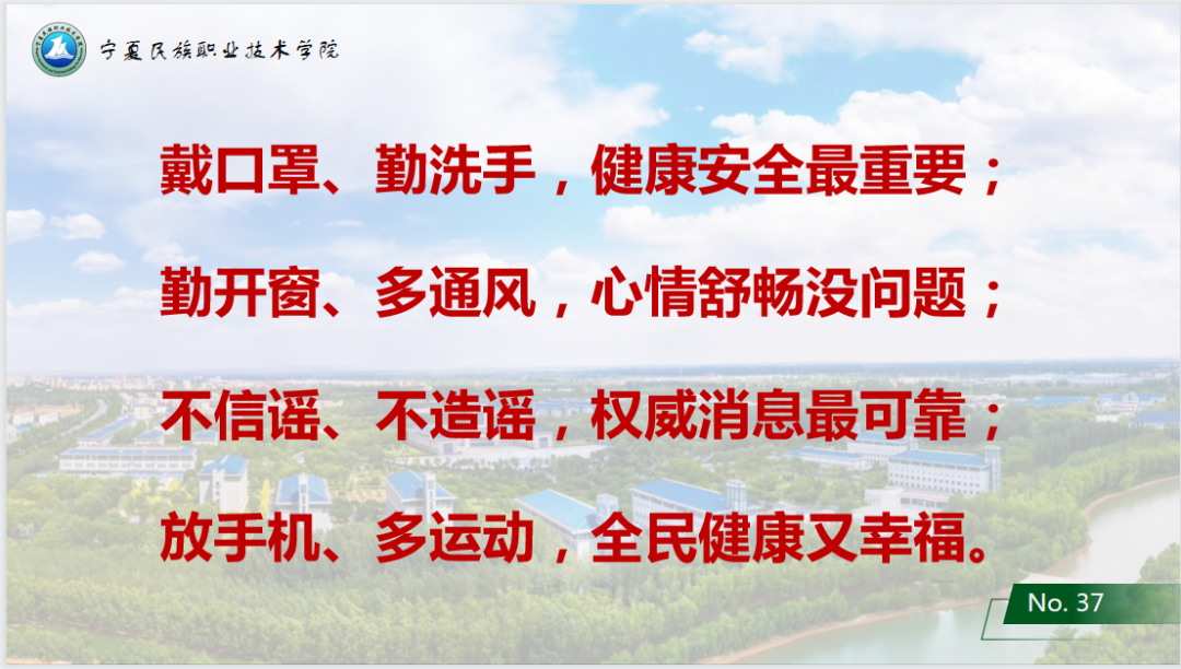 通过讲座,进一步巩固和丰富了广大师生对秋冬季常见传染病的认知,树立了“健康第一、预防为主”的意识,大家一致表示,要进一步筑牢学院病情防线,为平安健康校园建设贡献力量,以实际行动喜迎党的二十大胜利召开!