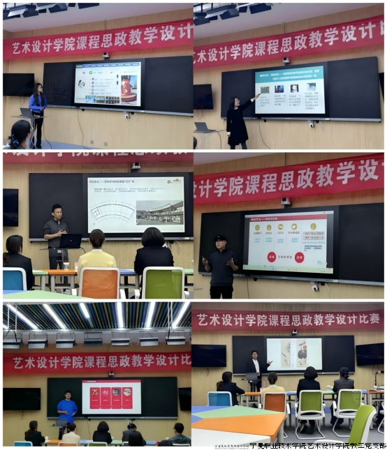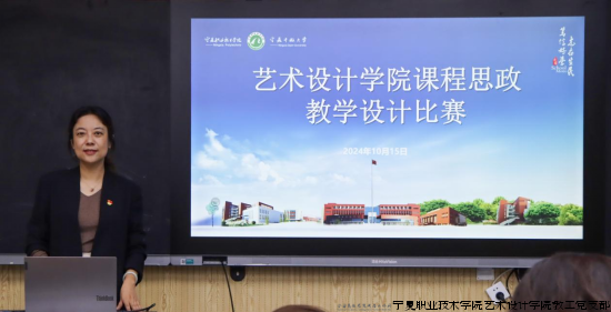 为全面落实立德树人根本任务,加快推进职业教育“五金”建设,深入挖掘各类课程的思政教育资源,推动我院专业课程与思政教育的深度融合,提升课程思政的教学质量和效果,根据《关于举办宁夏职业技术学院2024年教育课程思政教学设计大赛的通知》要求,10月15日下午,艺术设计学院教工党支部精心组织、成功举办2024年课程思政教学设计比赛。为确保大赛的专业性和权威性,此次比赛聘请我校马克思主义学院思政专家担任评委,王芳副院长主持,学院领导班子和全院教职工观摩了比赛。