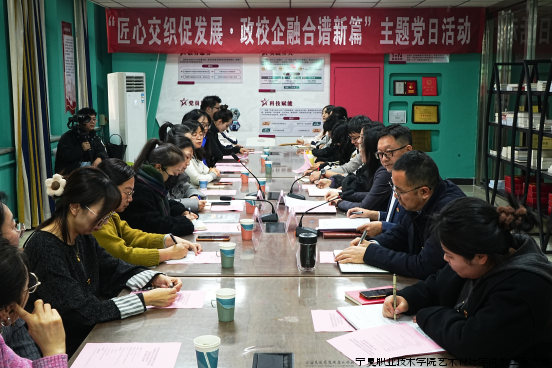 为深入学习贯彻习近平新时代中国特色社会主义思想,充分发挥党建引领作用,推动政校企协同发展,2025年12月27日下午,“匠心交织促发展·校企融合谱新篇”主题党日活动在宁夏职业技术大学艺术设计学院艺术坊顺利举办。宁夏乡镇企业经济发展服务中心党支部、宁夏职业技术大学艺术设计学院党总支以及宁夏米客食品有限公司党员干部共同参加活动。