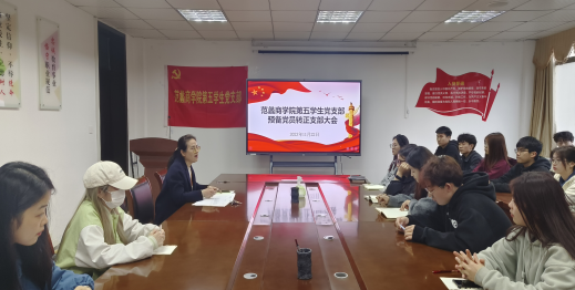 本网讯(记者/廖伟迪)11月22日下午,范蠡商学院第五学生党支部在1331召开预备党员转正支部大会,支部全体党员、预备党员参会,会议由支部书记邢红央主持。
