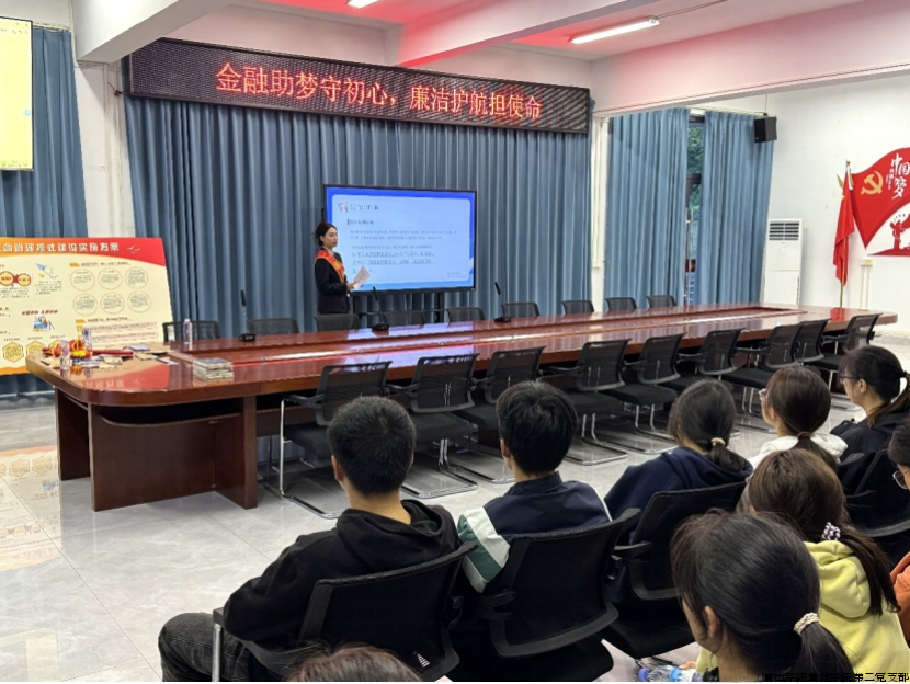 为深化发展型资助育人工作,筑牢学生诚信廉洁根基,11月11日,莆田学院管理学院以“七维赋能”发展型资助育人品牌项目为抓手,在学生社区红色驿站举办“金融助梦守初心,廉洁护航担使命”廉洁教育系列活动。此次活动特别邀请中国工商银行莆田涵江支行代表陈奕晴担任主讲人,团支部书记周仕杰,副书记李陈煌以及支行代表陈俊鉴、管理学院第二党支部书记张泽友、莆田学院小青柑志愿服务队志愿者、管理学院同学们参与活动。