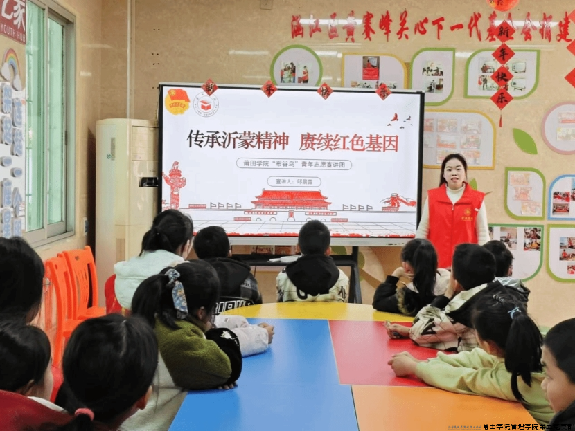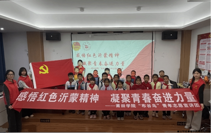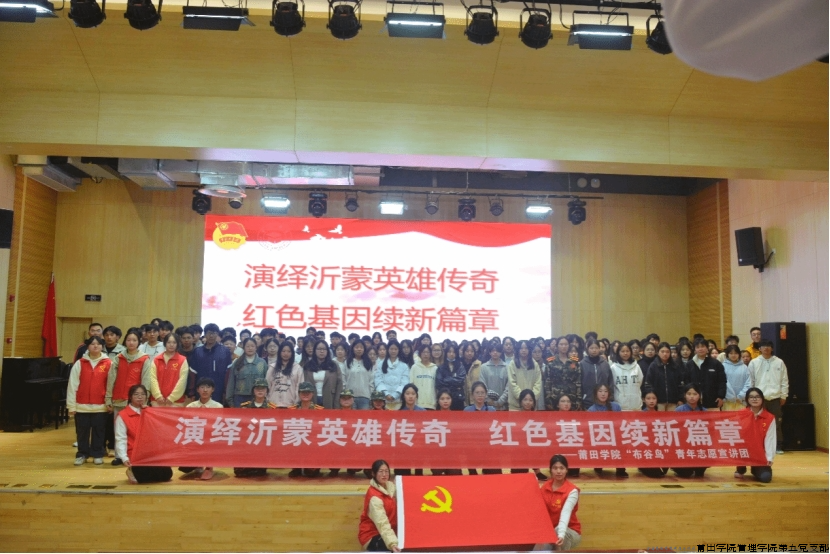 图为莆田学院“布谷鸟”青年志愿宣讲团开展“感悟红色沂蒙精神,凝聚青春奋进力量”主题宣讲活动。