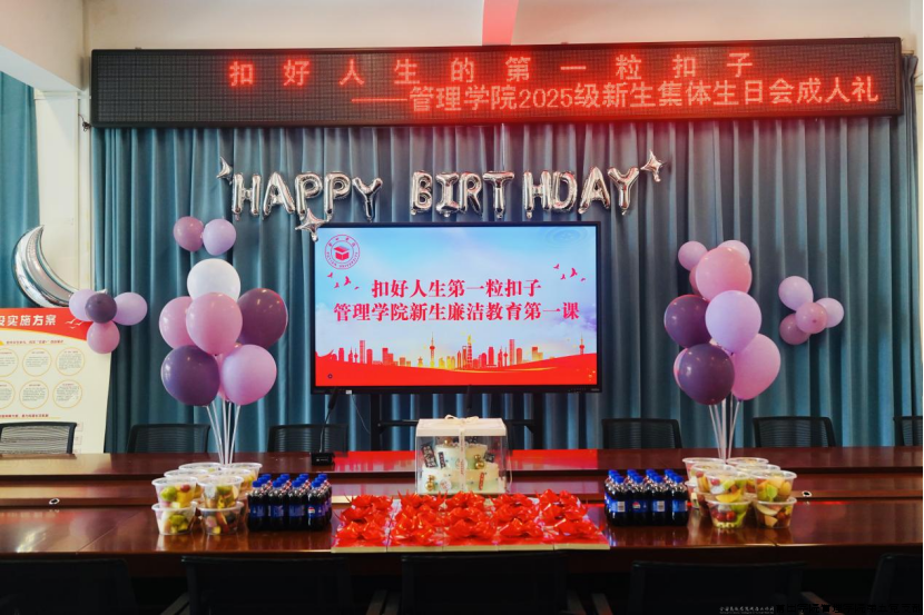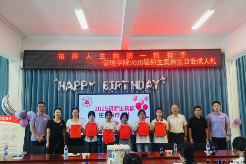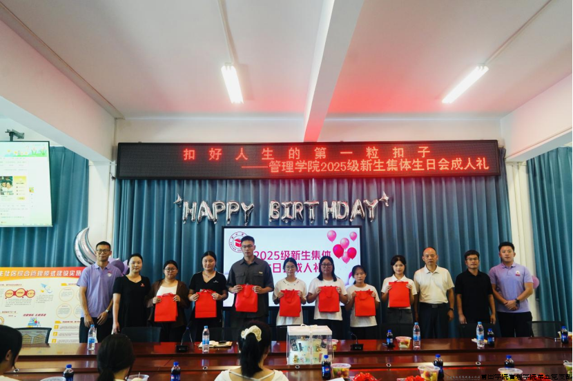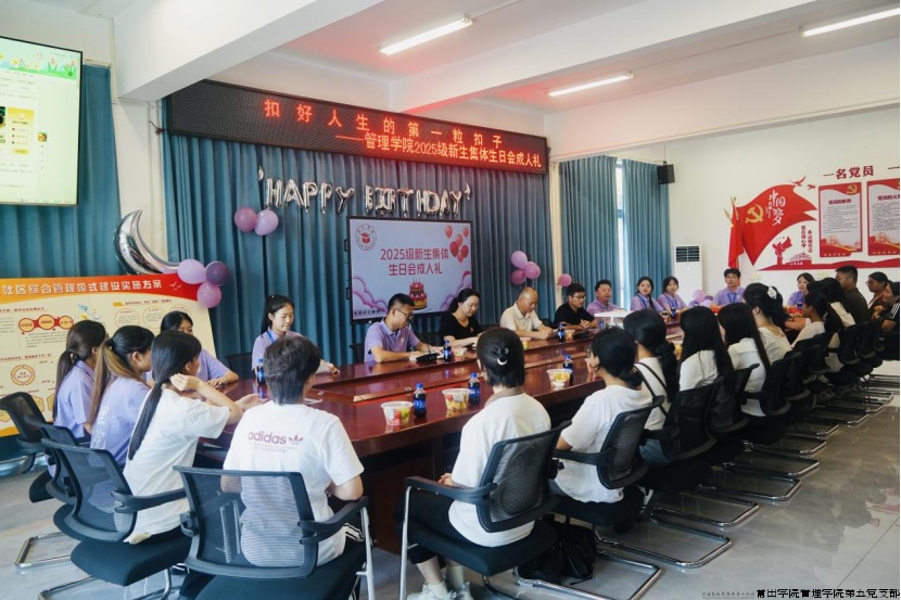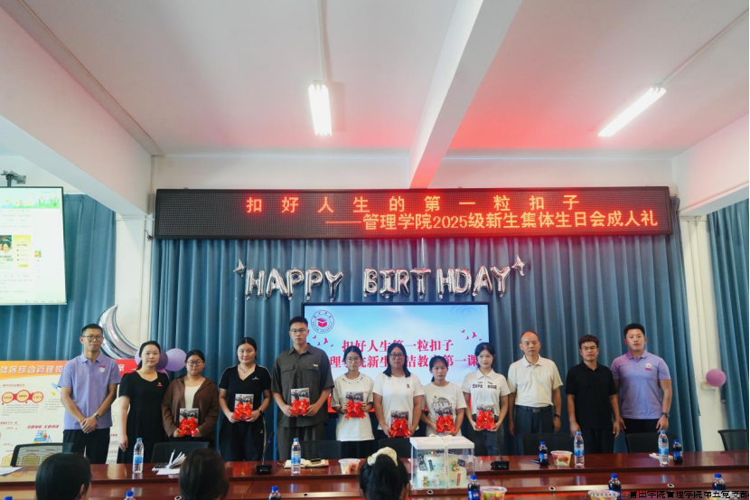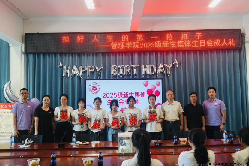 9月7日,莆田学院紫霄校区红色驿站内暖意融融,管理学院院长蒋长春,管理学院党委副书记、第五党支部书记曾丽青,管理学院副院长、教师党支部书记韩世锋,管理学院团委副书记张少涵,辅导员张泽友等师生代表齐聚一堂,共同为13位9月生日的2025级新生“寿星”代表庆生。