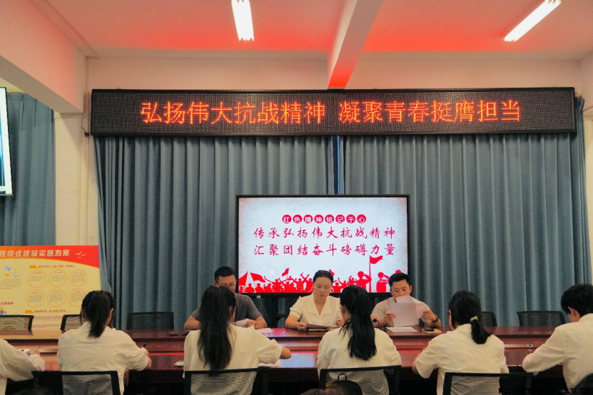 为深入学习领会习近平总书记在纪念中国人民抗日战争暨世界反法西斯战争胜利80周年大会上的重要讲话精神,弘扬伟大抗战精神,激发青年学子的爱国热情与责任担当,9月12日,管理学院第二党支部、第五党支部、紫霄渭庄社区3#-4#楼栋功能型党支部联合在红色驿站开展“弘扬伟大抗战精神 凝聚青春挺膺担当”主题党日活动。管理学院党委副书记、第五党支部书记曾丽青,管理学院团委副书记、霄渭庄社区3#-4#楼栋功能型党支部书记张少涵,管理学院第二党支部书记张泽友,各党支部学生党员、入党积极分子及青年学生代表参加活动。