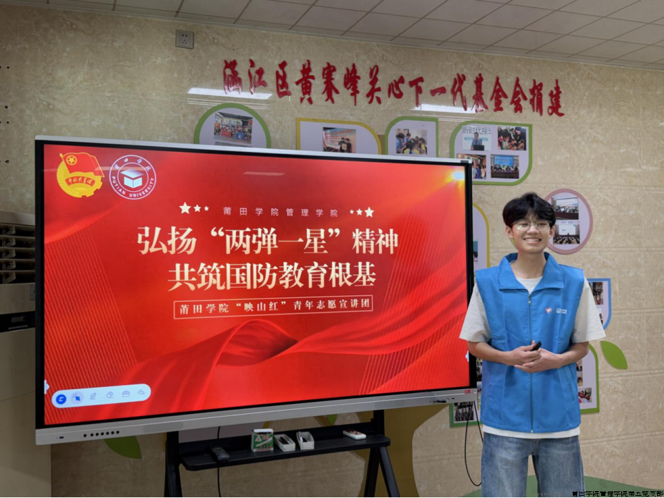 9月20日,恰逢我国第25个“全民国防教育日”,莆田学院“映山红”青年志愿宣讲团走进涵江区海星村童心港湾,开展以“弘扬‘两弹一星’精神,共筑国防教育根基”为主题的国防教育宣讲活动。活动将国防教育与“两弹一星”精神志愿宣讲深度融合,通过志愿者生动讲述、互动问答和航天国防主题创意手工等形式,在侨乡留守儿童心中种下“强国必有我”的种子,为健康成长注入坚毅品格与创新力量。