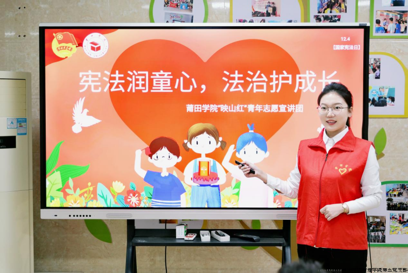 在第十二个“国家宪法日”到来之际,为深入学习贯彻党的二十届四中全会精神,弘扬宪法精神,维护宪法权威,莆田学院“映山红”青年志愿宣讲团以“宪法润童心 法治护成长”为主题,深入著名侨乡江口镇海星村童心港湾,开展了一场形式丰富、内容充实的普法宣传活动,将法律知识送到社区青少年身边,将法治温暖传递到青少年心里。