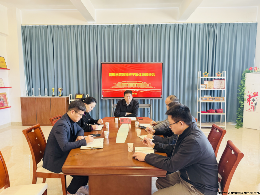 为深入学习习近平总书记关于加强党的作风建设的重要论述,锲而不舍落实中央八项规定精神,筑牢领导干部廉洁从政思想防线,1月13日,莆田学院党委常委、纪委书记、监察专员戴祐坤在紫霄校区蔡襄楼525会议室主持召开集体廉政谈话会,管理学院党委领导班子成员,管理学院第一党支部、第五党支部书记,纪委相关人员共同参加。