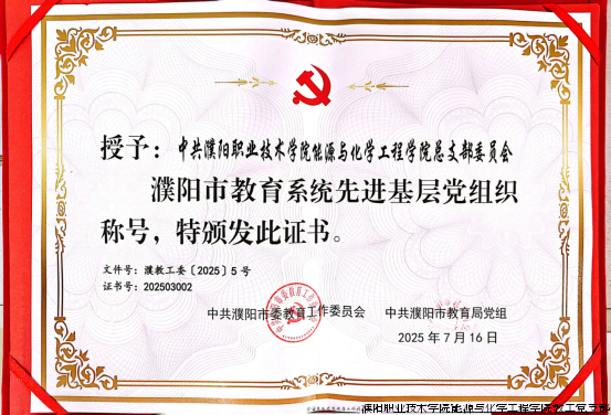 荣誉代表过去,实干成就未来。能源与化学工程学院党总支将珍惜称号,持续做“小”做“实”,为濮阳乃至中原地区化工产业高质量发展培养更多“留得住、用得上、干得好”的高素质技术技能人才!