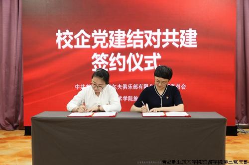 首先,依托此次现代学徒制校企育人共同体成立仪式,全国样板党支部旅游学院第三党支部与青岛国际高尔夫俱乐部有限公司党支部共同签订校企党建共建协议,双方将在企业党员导师制、赛事志愿服务、主题党日活动、党建品牌打造、党建课题研究等工作中开展资源共享、共建提升。