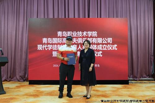 6月12日,旅游学院与青岛国际高尔夫俱乐部有限公司共同举办休闲服务与管理专业现代学徒制校企育人共同体成立仪式暨现代学徒制拜师仪式。青岛国际高尔夫俱乐部有限公司总经理吴栋、行业导师,旅游学院相关负责人、休闲服务与管理专业骨干教师及学生参加了仪式。