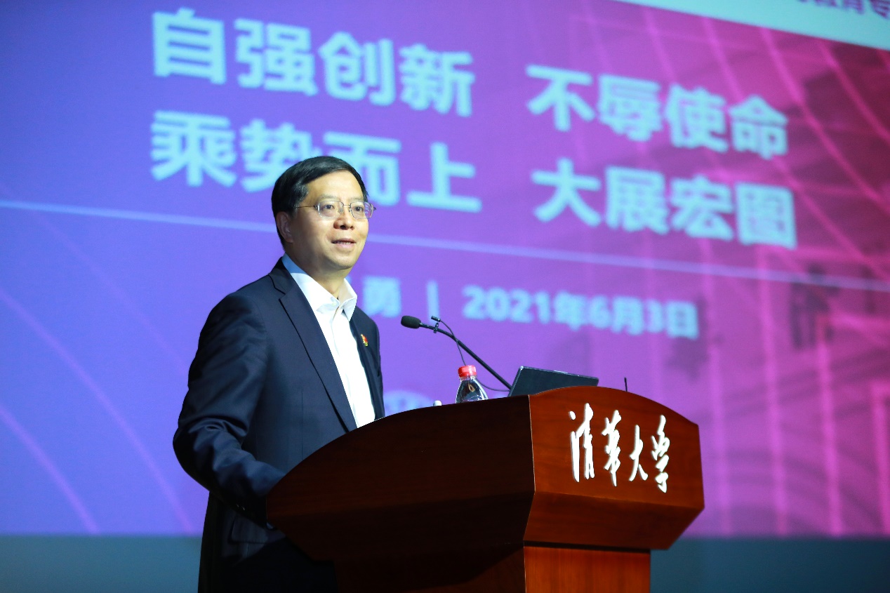 邱勇结合国际国内形势分析指出,我们要胸怀“两个大局”,一个是中华民族伟大复兴的战略全局,一个是世界百年未有之大变局。党的十九届五中全会把创新放在我国现代化建设全局中的核心地位,把科技自立自强作为国家发展的战略支撑。科研创新是清华大学的硬实力,用科技实力服务国家体现了清华人对使命的思考。自强是清华人的精神底色,自强者永远以创新为矢志不渝的追求,总是满怀“虽九死其犹未悔”的壮志豪情,在危机中育新机、于变局中开新局,以更大信心推进实现中华民族伟大复兴的历史征程。