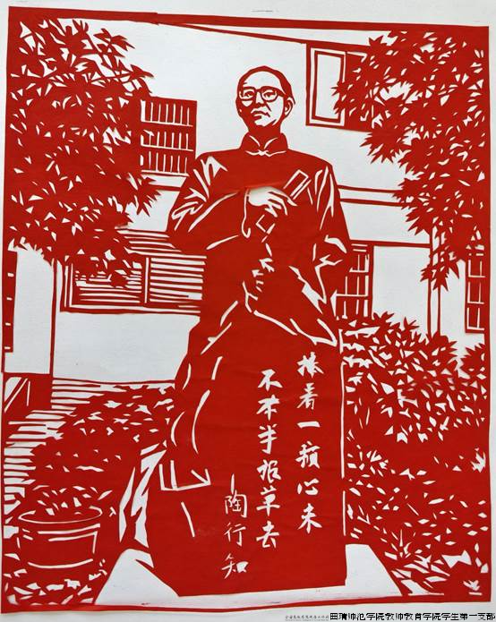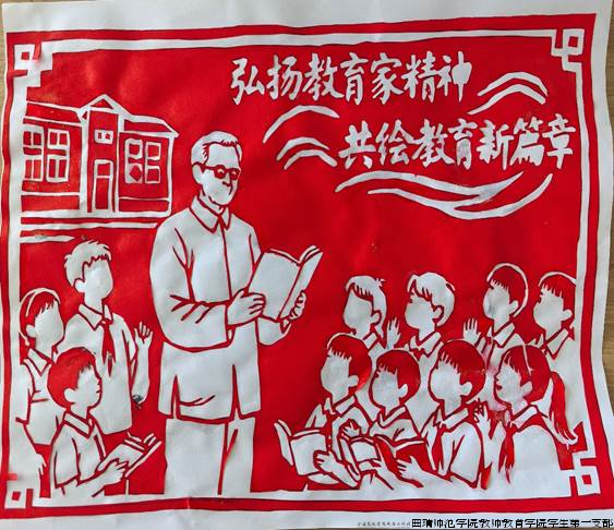 一纸一刃传匠心,精神图谱跃然指尖;非遗技艺育师能,知行合一强素养。作品《大山里的灯》借张桂梅校长持卷前行的坚定身姿,镌刻“乐教爱生、甘于奉献”的师者丰碑;作品《归国志士》通过钱学森跨洋归国的剪影,用镂空技法呈现火箭轨迹,展现“心有大我、至诚报国”的理想信念;作品《师说》刻画于漪老师伏案备课的经典姿态,诠释“言为士则、行为世范”的道德操守;作品《剪刀上的师者列传》以陶行知“小先生制”为题材,展现“启智润心、因材施教”育人智慧;作品《文脉千秋》以孔子杏坛弦歌为题材,表达“胸怀天下、以文化人”的弘道追求;作品《学途逐光》,以案前求知的专注场景,生动诠释“勤学笃行、求是创新”的躬耕态度;作品《杏坛师表》,集中勾勒跨越千年的教育家群像,刀锋流转间,家国情怀与文明薪火在方寸之间永恒绽放。