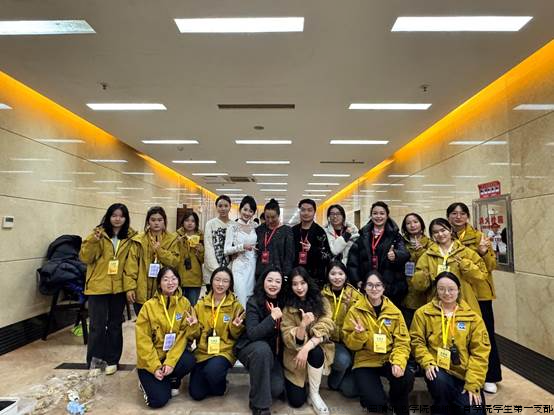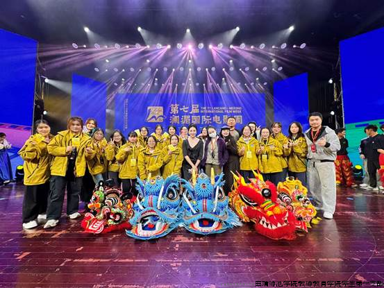 电影周开幕后,身着统一“志愿黄”马甲的师生们成为会场一道亮丽的风景线。他们穿梭于主会场、后台区、媒体接待处等各个岗位,或是协助导演团队完成流程衔接,或是引导中外嘉宾有序入场,又或是化身“文化使者”解答疑问。在演出环节,志愿者们凭借扎实的培训功底,精准配合舞台道具搬运与场景切换,以零失误的表现赢得主办方和参演团队的高度赞誉。“他们的专业态度让我看到中国青年的风采!”一位来自泰国的电影人感慨道。而在闭幕式的集体合影中,志愿者们与国内外演职人员并肩而立,灿烂的笑容定格了跨国文化交流的美好瞬间。