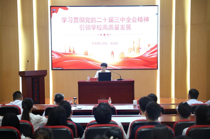 9月18日下午,齐鲁理工学院举办学习贯彻党的二十届三中全会精神宣讲报告会,党委书记徐淑凤作宣讲报告,学校部分师生党员集中聆听了报告。