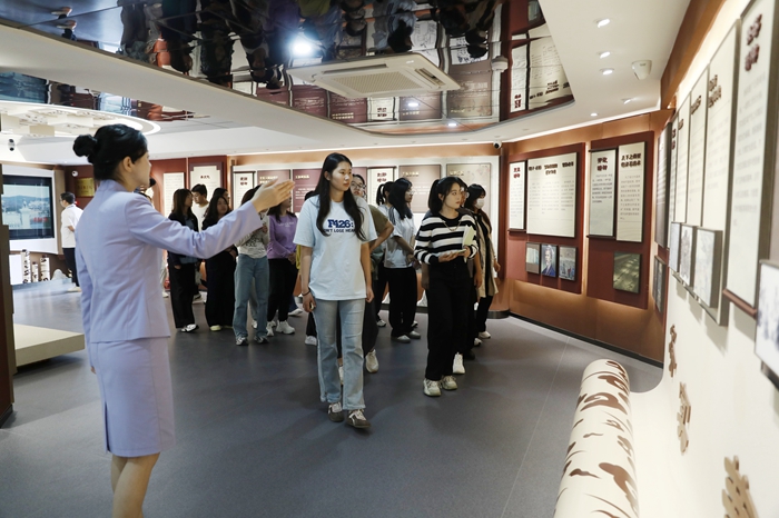 学党史 传承红色基因。为全面落实立德树人根本任务,学校构建完善“课堂理论教学-校内馆堂体验-校外社会实践”的“三段式”大思政体系,建设党史馆、山东党史馆,齐鲁文化馆、稷下馆、党建主题展厅等“四馆一厅”文化育人平台。该平台融历史文化展览、课堂拓展学习、虚拟空间体验、育人成果展示等于一体,是连通第一课堂、第二课堂,融通线下、线上,融合党史教育、思政教学、红色文化传承等综合功能的教育基地,是全校青年学子接受爱国主义教育、四史教育、红色文化教育的重要场所。集中参观“四馆一厅”,体验“一站式”学生社区,成为新生入学教育的重要内容。国庆节前夕,学校组织2024级新生进行了集中参观学习。在讲解员的引导下,新生们认真聆听革命先烈的英勇事迹,深刻体悟中华优秀传统文化的博大精深。他们在一件件展品前驻足沉思,在一幅幅图片前发表感慨。新生们反映,这次参观学习不仅是一次思想的教育,更是一次心灵的洗礼和精神的升华。新生们纷纷表示,要铭记历史、牢记使命、砥砺前行,努力成为有理想、敢担当、能吃苦、肯奋斗的新时代好青年。