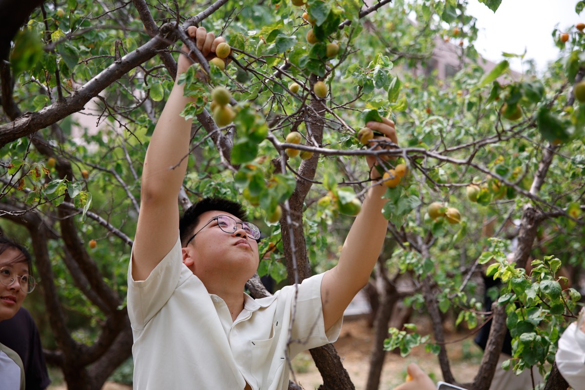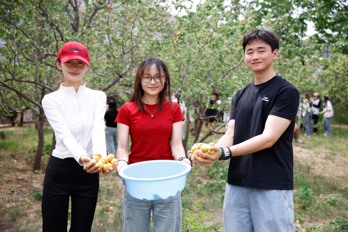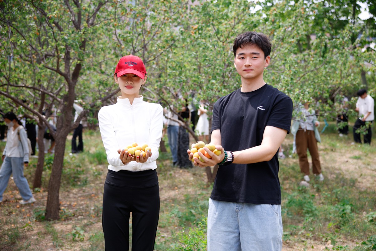 在采摘现场,各学院师生来到专属劳动区域,分工协作。有的负责采摘低处的果实,有的借助工具摘取高枝的杏子,还有的细心分装,为后续分发做好准备。有的同学表示,“自己精心栽培和养护下长出的果实,格外香甜”;有的则表示,“把亲手采摘的果子和大家一起分享,真切体会到了劳动的成就感。”