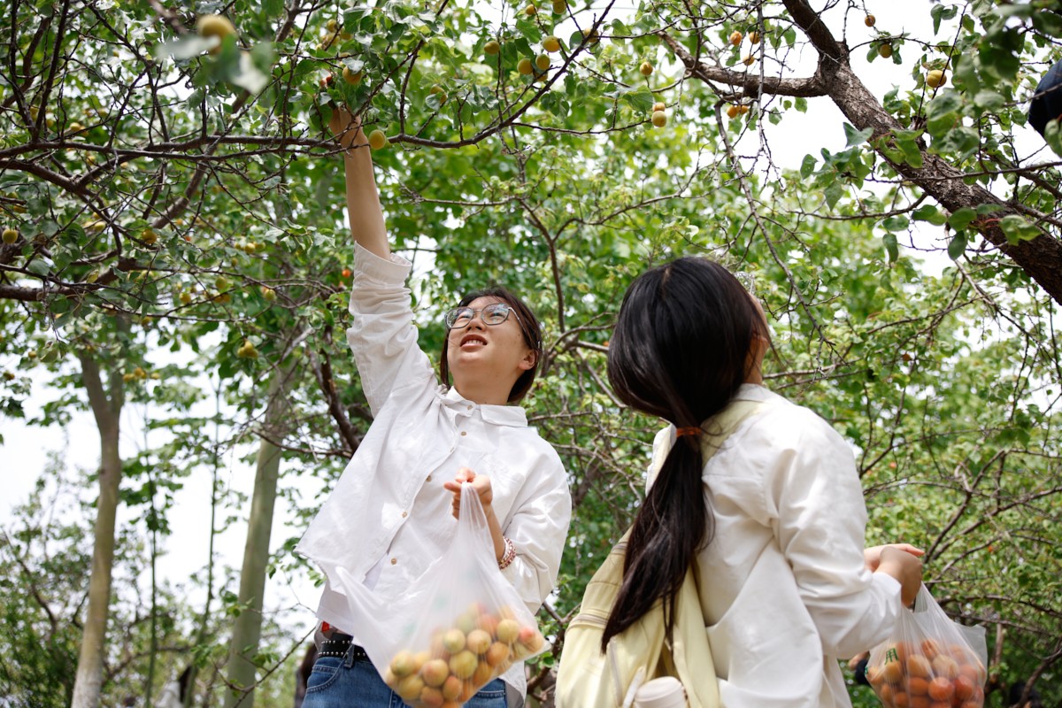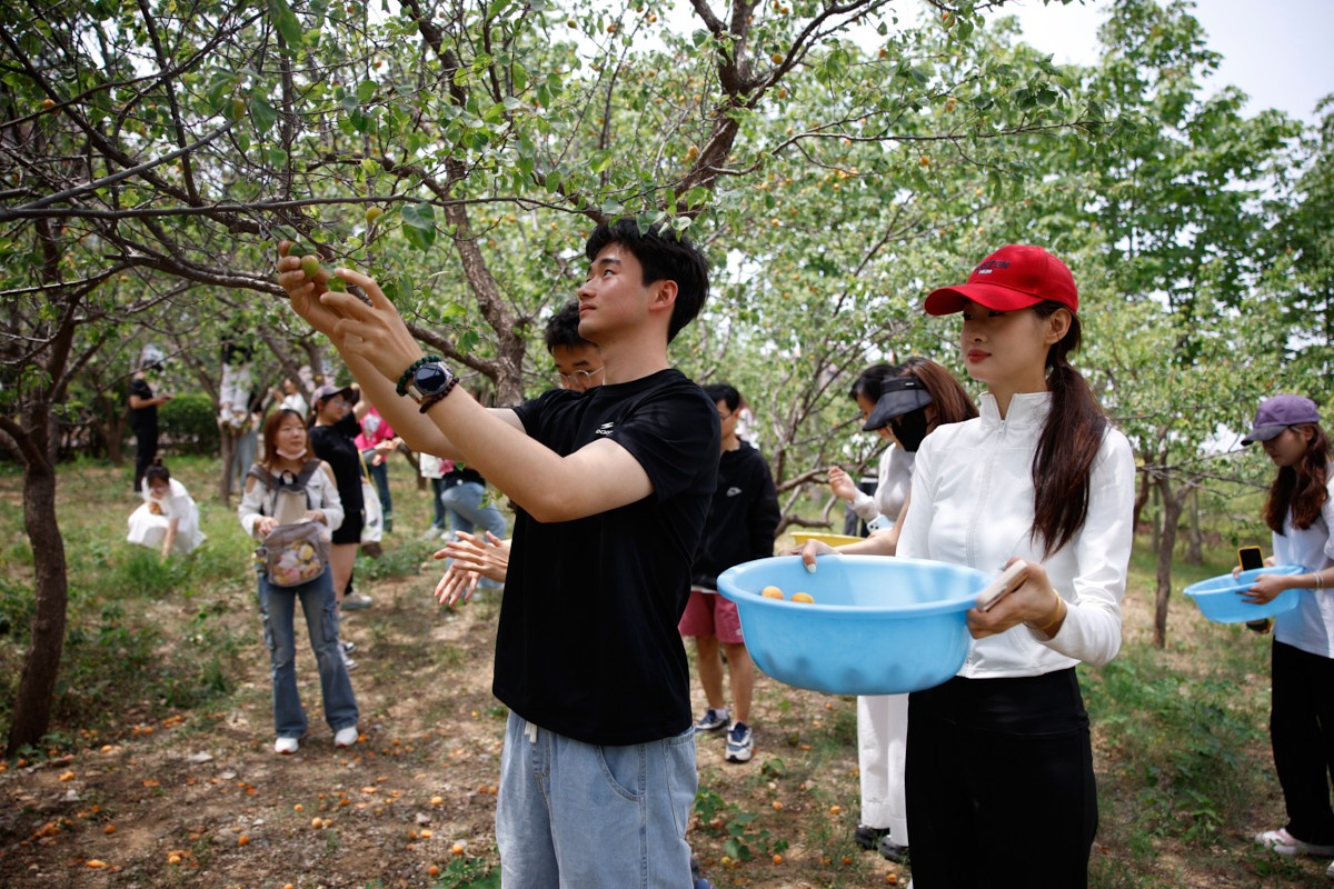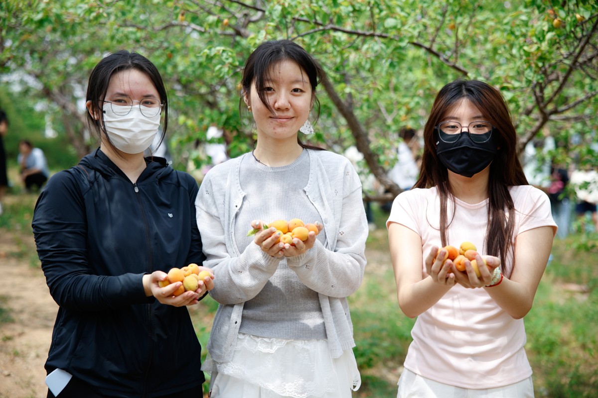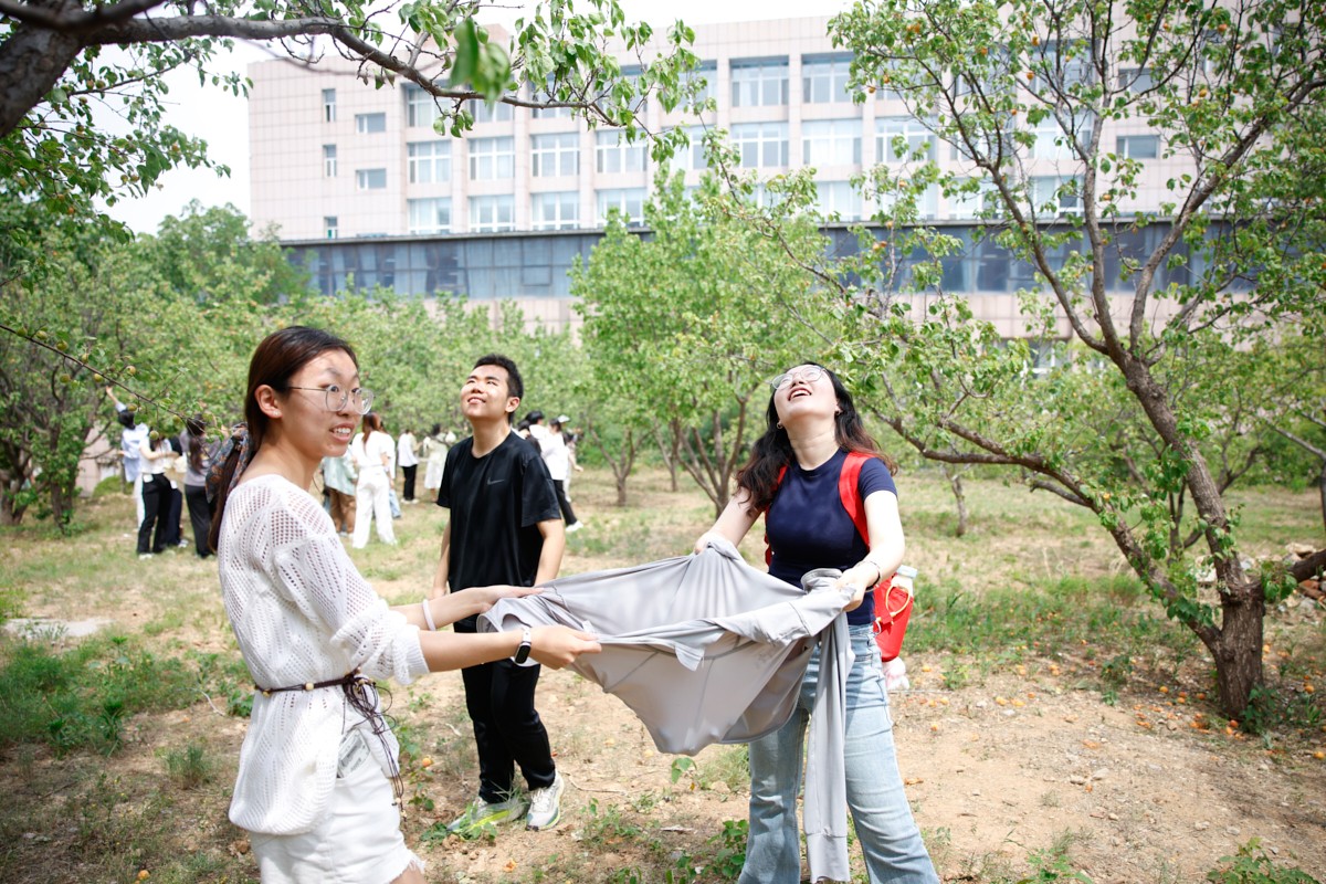 在采摘现场,各学院师生来到专属劳动区域,分工协作。有的负责采摘低处的果实,有的借助工具摘取高枝的杏子,还有的细心分装,为后续分发做好准备。有的同学表示,“自己精心栽培和养护下长出的果实,格外香甜”;有的则表示,“把亲手采摘的果子和大家一起分享,真切体会到了劳动的成就感。”
