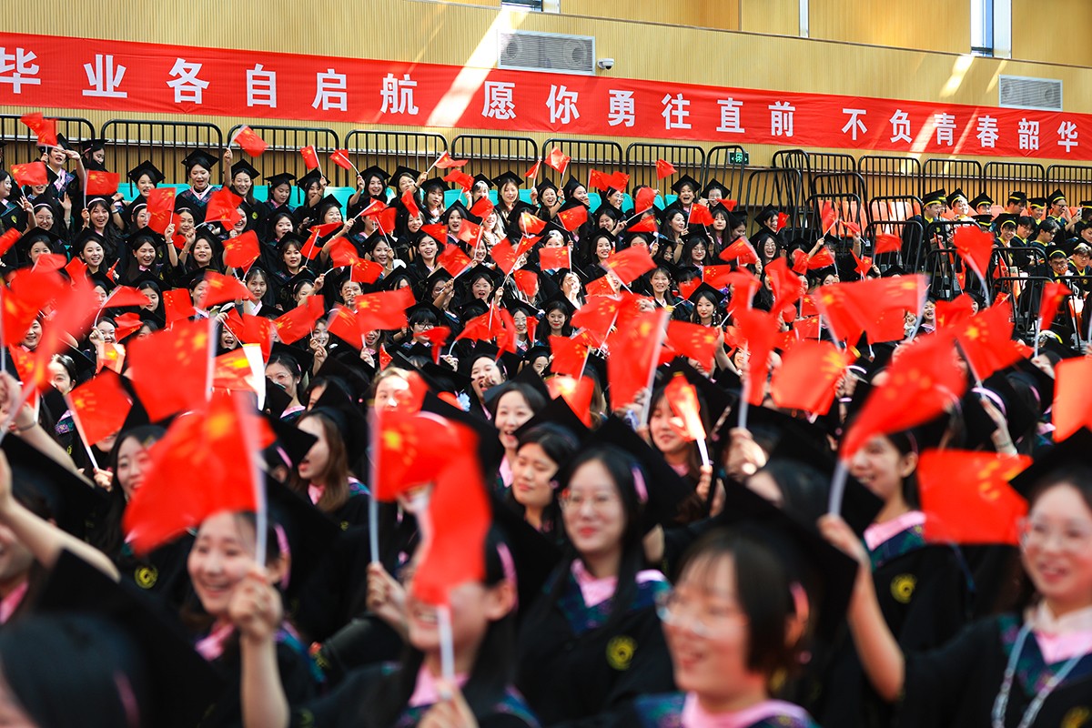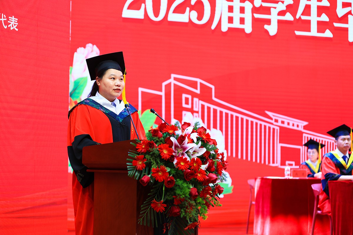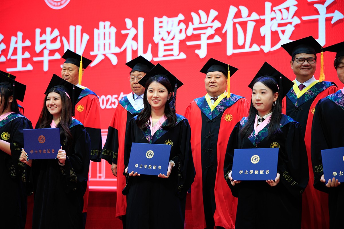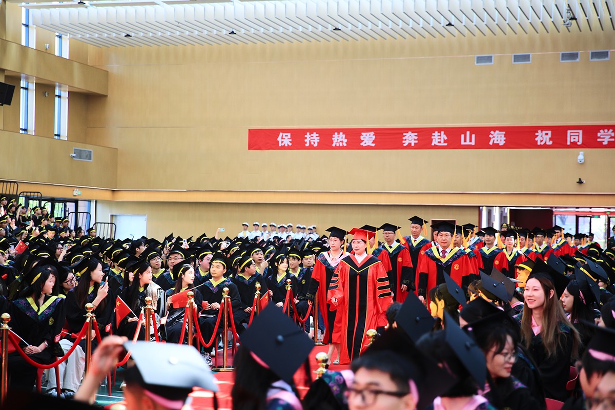 在雄壮的国歌声中,毕业典礼正式启幕。校长、学位委员会主任常翠鸣教授致辞,深情回顾了2025届毕业生所走过的大学时光、取得的丰硕成果。向圆满完成学业的全体毕业生表示祝贺,向一路陪伴、支持学子成长成才的老师们表示感谢。为即将起航未来的2025届毕业生们,送上最美好的希望和祝福!她深情寄语全体毕业生,把“家国”装进心里,用“实干”走向远方,让“文脉”滋养人生,在推进强国建设、民族复兴伟业中展现青春作为、彰显青春风采、贡献青春力量,奋力书写为中国式现代化挺膺担当的青春篇章!
