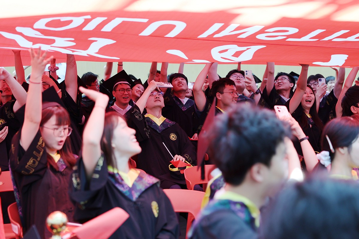 学位授予环节,毕业生们满怀喜悦和激动的心情,依次登台。学位评定委员会委员为其正冠拨苏、颁发证书,定格下人生重要时刻的璀璨瞬间。