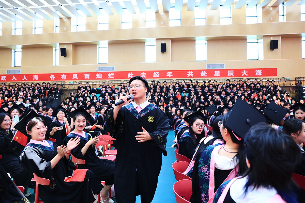 智能制造与控制工程学院王磊、文学院高寅泉代表全体毕业生发言,深情回顾了求学四载的成长点滴,表达了对母校的眷恋与对未来的憧憬。生物与化学工程学院执行院长高星、艺术学院赵蕾分别代表教师发言,勉励毕业生们勇担时代使命,用实干担当书写属于自己的精彩人生。