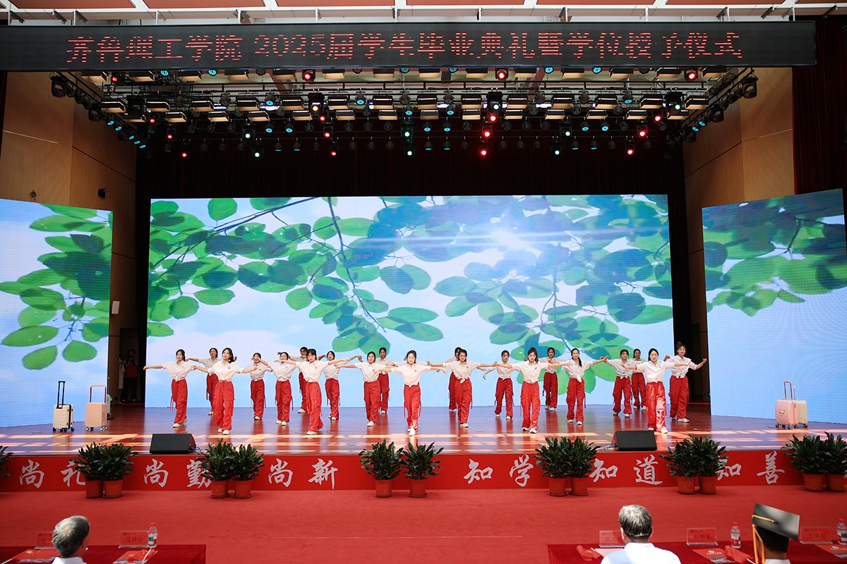 学位授予仪式结束后,学校领导与毕业生共同观看了文艺演出。典礼在师生深情高唱《我爱你中国》的歌声中徐徐落下帷幕。