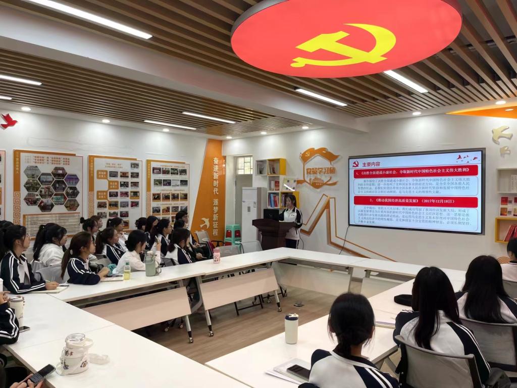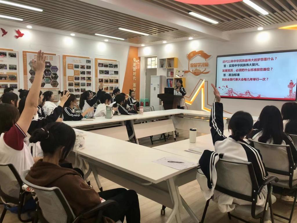 本次读书分享会以“支部师生党员共读一本书”的形式,由党员和入党积极分子组成的小组结合原著,带领党员和入党积极分子共读《习近平著作选读》(第二卷),现场同学分享读书心得,深刻感受习近平新时代中国特色社会主义思想的真理光芒与实践伟力。同学们结合学习贯彻习近平新时代中国特色社会主义思想主题教育应知应会进行知识竞答,大家积极举手发言,现场学习氛围浓厚。