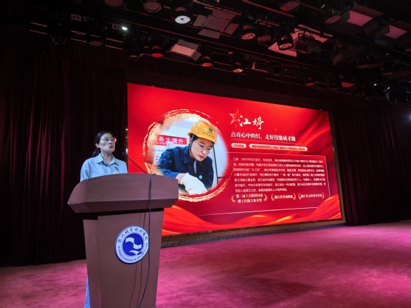 首先浙江省劳动模范江婷老师以《点亮心中的灯,走好技能成才路》为题,用她追求极致的“工匠精神”激励新生在平凡岗位上创造不凡价值。