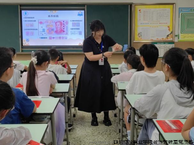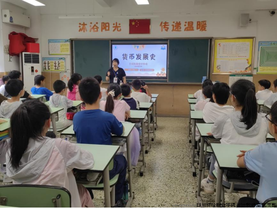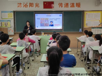 为深入贯彻落实立德树人根本任务,推动课程思政建设向中小学延伸,2025年6月6日,四川财经职业学院会计教研室党支部联合审计教研室党支部、会计学院团总支学生会,组织立诚弘毅会计协会红财智行组,走进成都市龙泉驿区上东学校,成功举办“红财启航 智行未来——货币发展史”主题宣讲活动。此次活动由会计教研室党支部主导策划并牵头实施,旨在发挥专业优势,服务社会,为五年级7班的同学们带来一堂生动有趣的财经启蒙课。